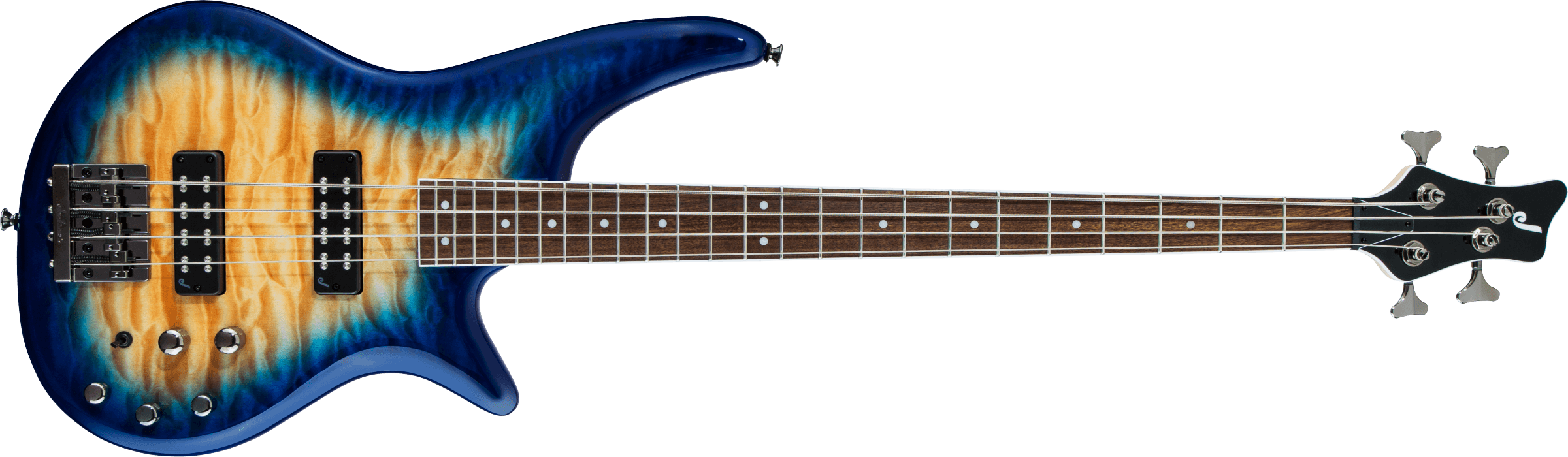 El Jackson JS Series Spectra Bass JS3Q Amber Blue Burstcombina un ágil diseño offset con dos pastillas de salida media y electrónica activa para crear unos graves de alta calidad con un sonido masivo. En cuanto a la construcción, Jackson se apoya en un cuerpo de álamo con una pequeña tapa de arce nubosoque, gracias a la prolongación del cuerno superior, mantiene un equilibrio perfecto en la correa del bajo, mientras que el mástil de arce atornilladose encuentra cómodamente en la mano gracias al perfil "Speed Neck"y al diapasón de laurel en el radio compuesto. Dos Humbuckers Jackson de salida mediatambién prometen un sonido de graves jugoso con un sonido de graves gruñido que se puede ajustar con precisión a través del control de tono activo de 3 bandas. Un interruptor push/pull en el control de volumen cambia el bajo al modo pasivoclásico si se desea, y también está disponible un mini interruptor para los sonidos de coil split. Por último, pero no por ello menos importante, el Jackson JS Series Spectra Bass JS3Q Amber Blue Burst cuenta con un enorme puente Jackson HiMassy una precisa mecánica de bajos Jackson Die-Cast.